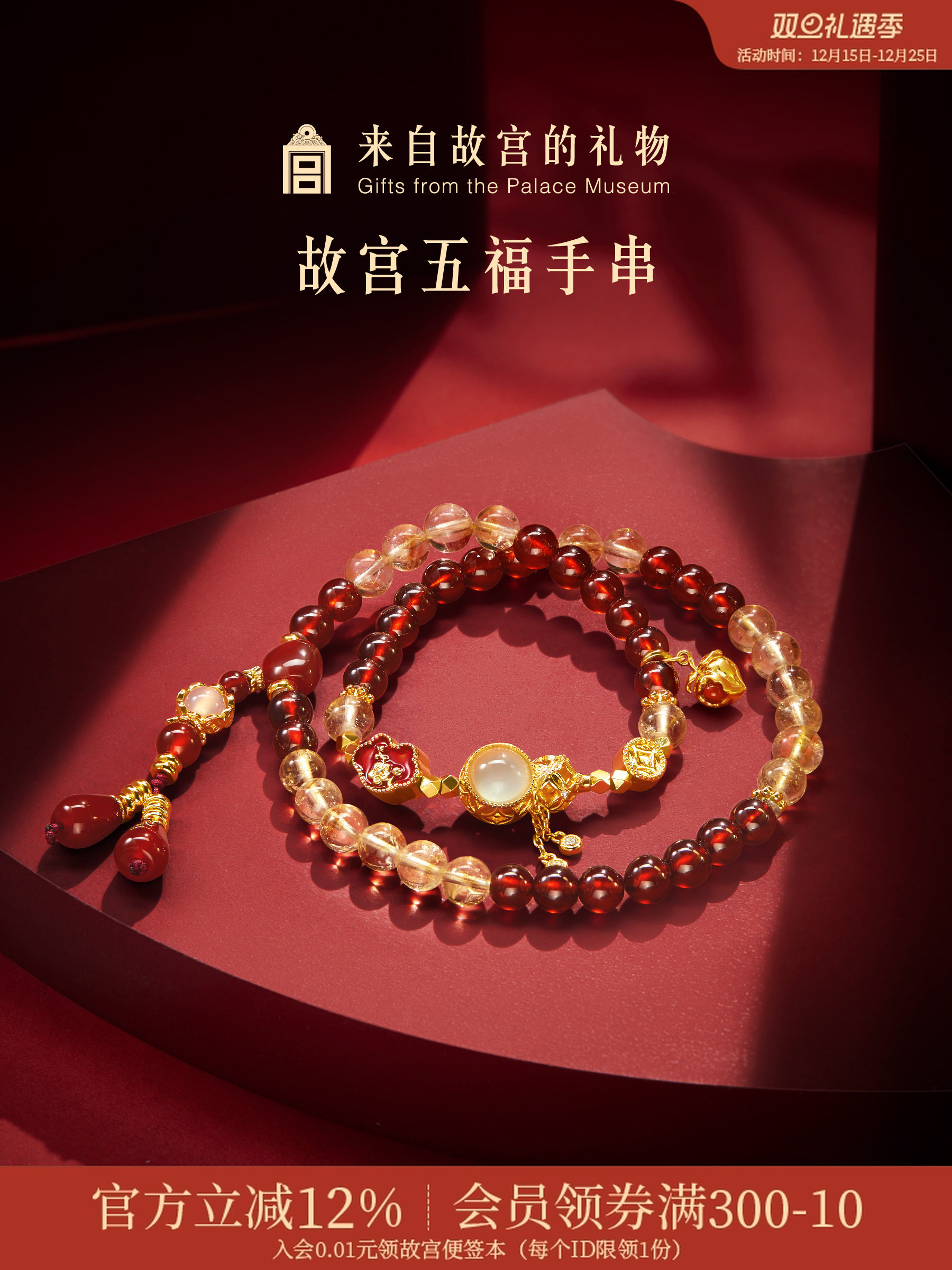 Forbidden City Taobao|Five Blessings Bracelet Yellow Tower Crystal Garnet Bracelet Cultural Innovation New Year Zodiac Year Birthday Gift for Women