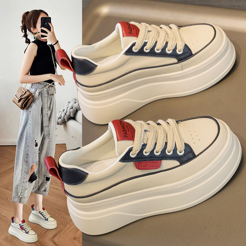 Hong Kong White Sneakers for Women, 2025 Autumn and Winter New Versatile Thick-Soled Height-Increasing Fleece-Lined Casual Stylish Sneakers