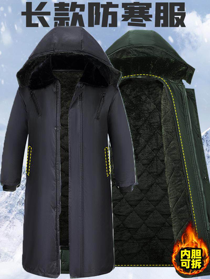 Labor Protection Cotton-Padded Jacket, Military Coat, Winter Fleece-Lined Thickened Cotton Coat, Windproof and Waterproof, Detachable Cotton-Padded Jacket, Long Style Cold-Proof Clothing