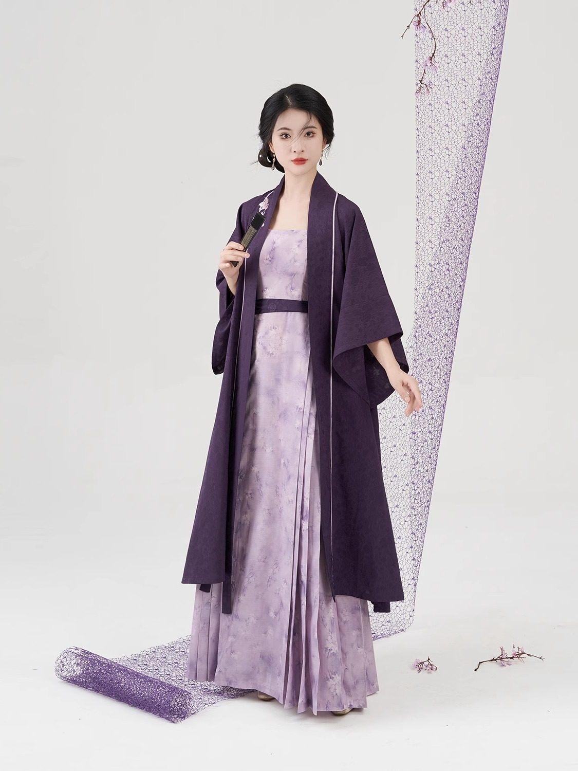 Original Hanfu by Huayouyue Weaving Department, Song Dynasty Style Long Cardigan with Embroidered Flowers, Modified Mamian (Horse Face) Suspender Dress