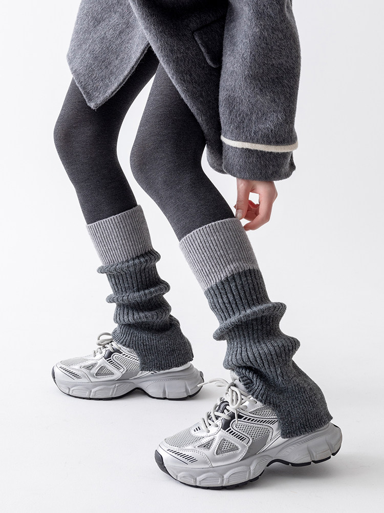 Color-Blocked Socks for Women, Winter Y2K Cashmere Sock Covers, Open-Ended Barn Style Calf Sleeves, Paired with Snow Boots, Long Slouch Socks