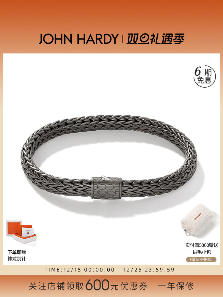 John Hardy Icon Series Medium Matte Black Flat Silver Bracelet Hand-Woven High-End Accessible Luxury