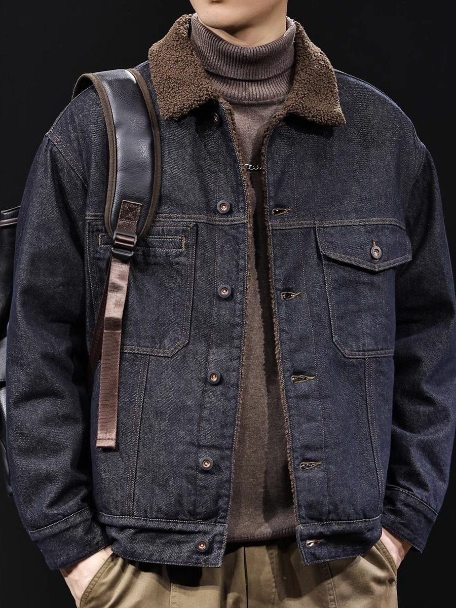 Lamb Wool Jacket for Men, Winter 2025 New Style, Thickened and Warm Cotton Coat, Men's Blue and Black Denim Jacket, Autumn and Winter Clothing