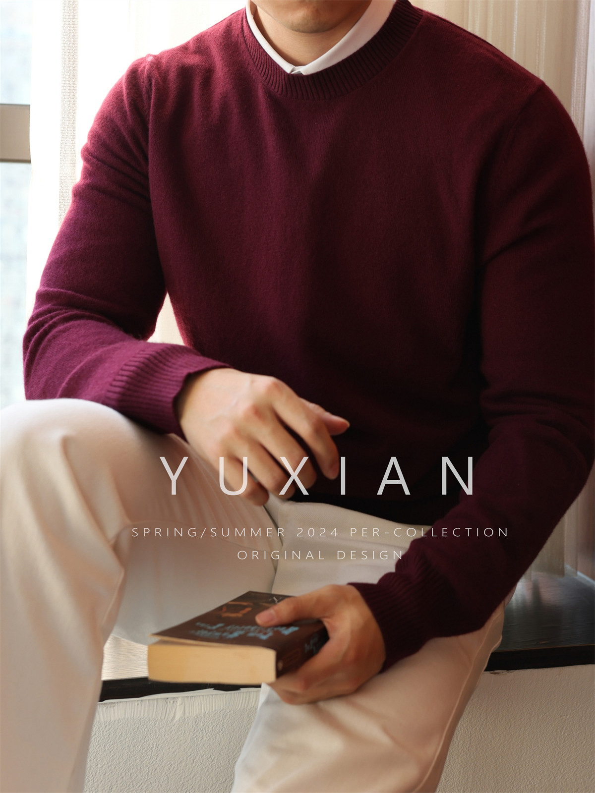 [Same Style as Luigi] 100% Merino Pure Wool Knitted Round Neck Casual Business Christmas Red Sweater