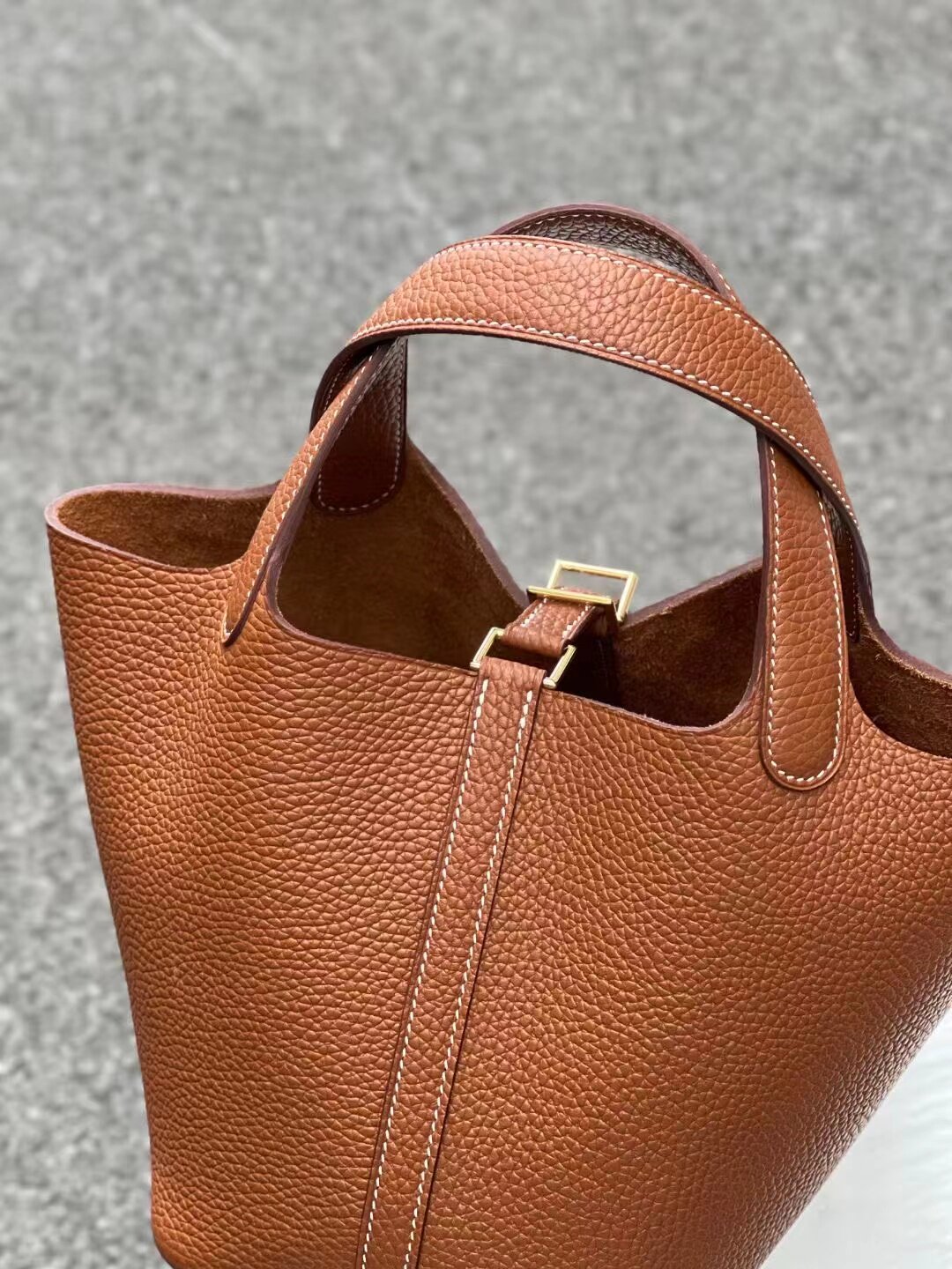 Imported Tc Cowhide Fully Hand-Stitched Waxed Thread 18 Vegetable Basket Bag for Women 2024 Autumn and Winter New Genuine Leather Handbag Bucket Bag
