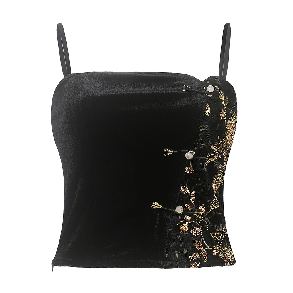 Avlinva【Golden Jade Robe】National Style New Chinese Embroidery Color-Block Fitted Autumn Velvet Camisole Women's Long Dress