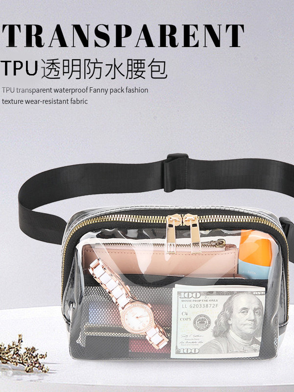 New Lulu-Style Tpu Waterproof Transparent Waist Bag for Outdoor Sports Running Crossbody Bag with Adjustable Belt Wallet