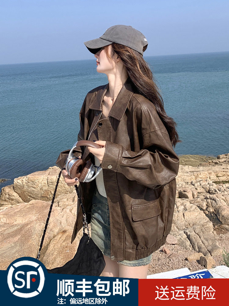 Meilade Retro Pu Leather Jacket for Women 2025 Spring and Autumn New Korean Style High-End Street Style Biker Leather Jacket