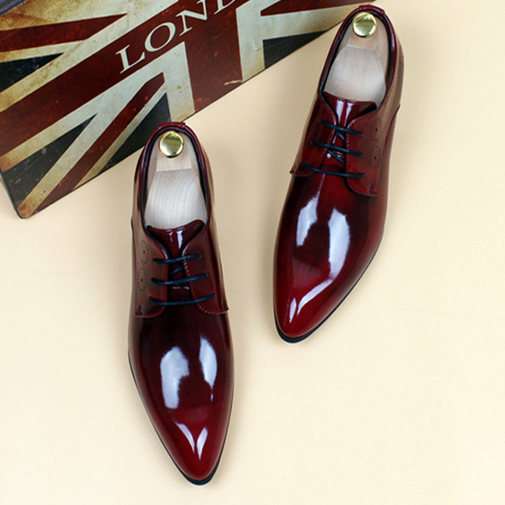 British-Style Pointed Leather Shoes for Men, Korean Version, Business Formal Wear, Red Shiny Leather Wedding Shoes, Trendy Height-Increasing Casual Men's Shoes