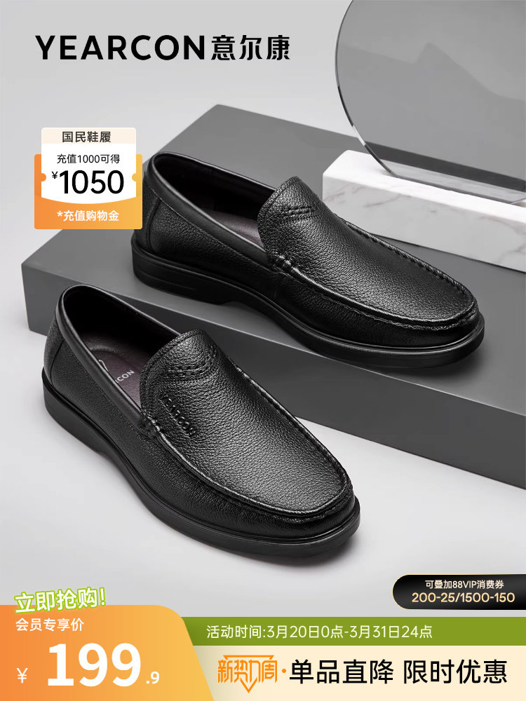 Yierkang Men's Shoes, Sheepskin Business Casual Leather Shoes, Men's Large Size Soft-Soled Slip-On Genuine Leather Shoes for Middle-Aged Dads