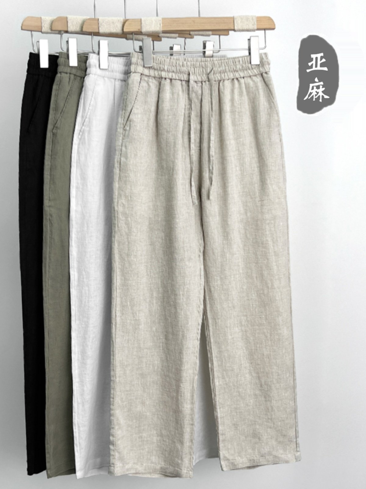 High-End Linen Pants for Men, Summer Thin Cotton-Linen Trousers, Men's Casual Pants, Loose Straight-Leg Pants, Linen Material Men's Pants