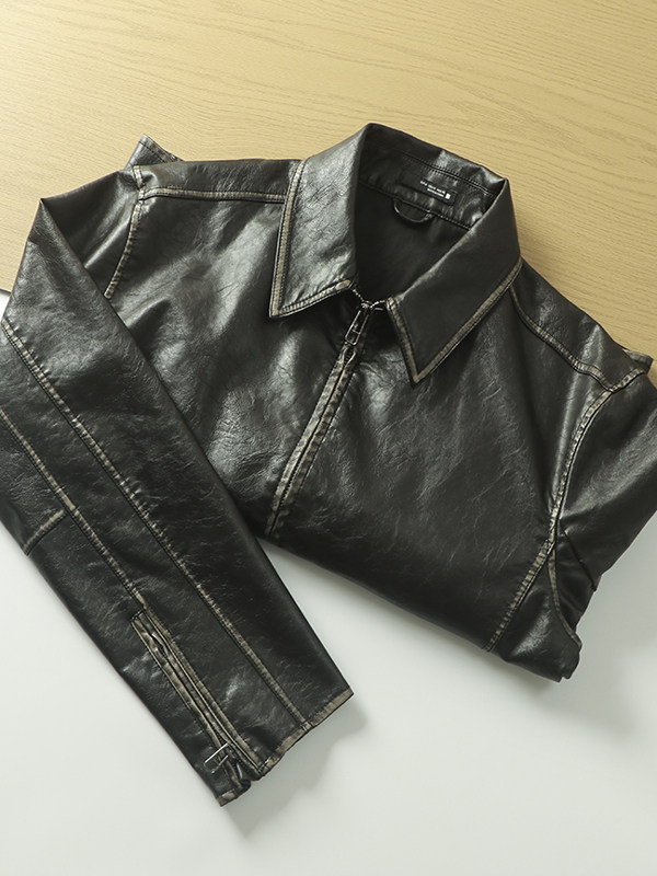 Western-Style Jacket 699, Washed Vintage Distressed Pu Leather, Spring Men's Fashion Biker Lapel Leather Jacket