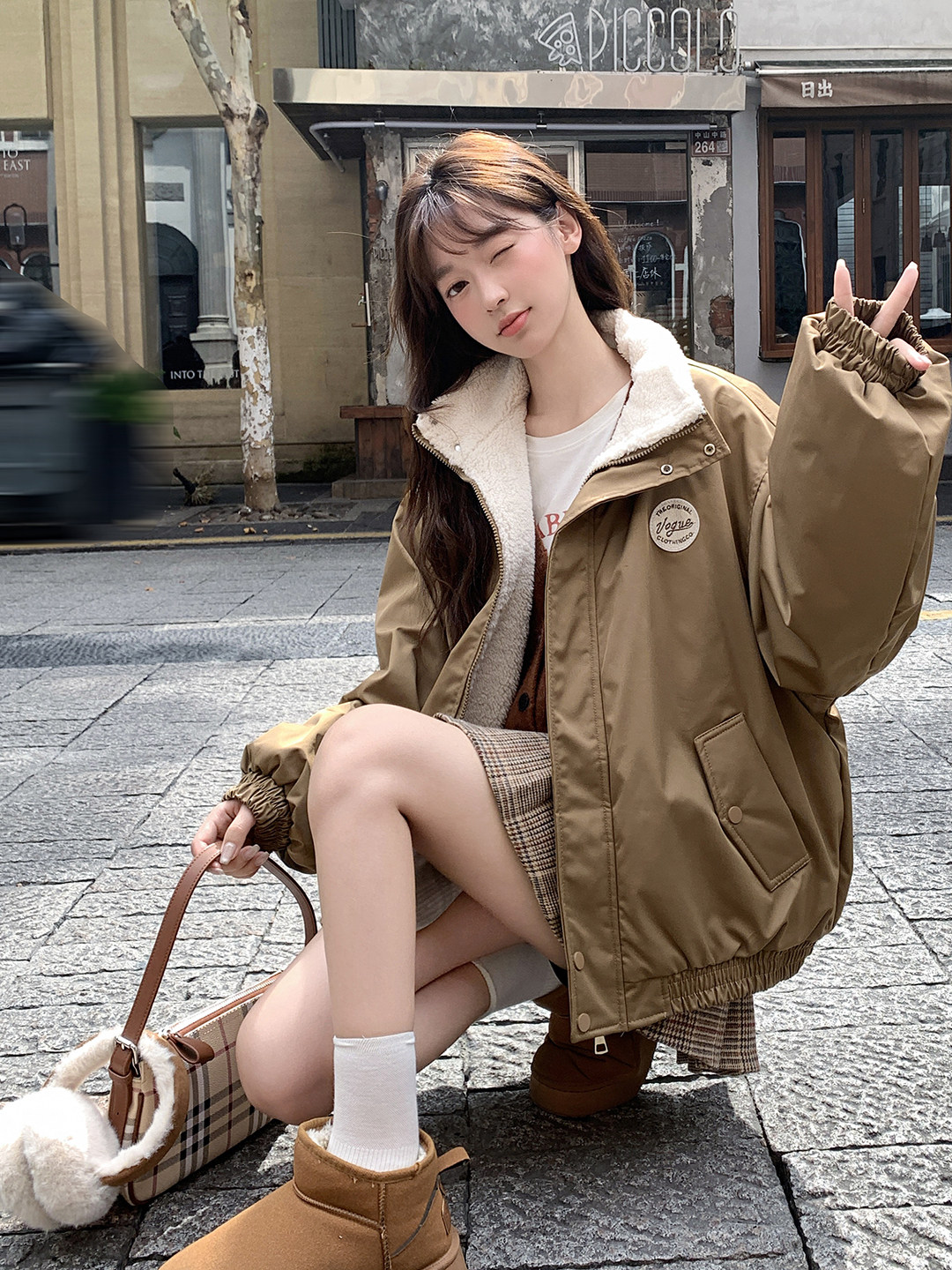 American-Style Thick Lamb Wool Plush Jacket for Women, 2025 Winter New Casual Versatile Baseball Cotton Jacket