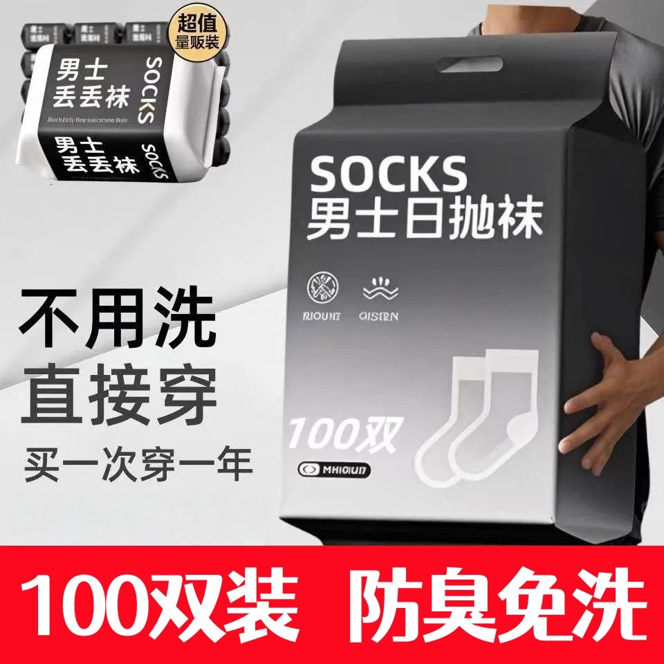 100 Pairs of Disposable Socks for Men and Women, Deodorant, Sweat-Absorbent, Daily Disposable Socks, No-Wash Mid-Calf Socks, Student Travel Short Socks, Summer