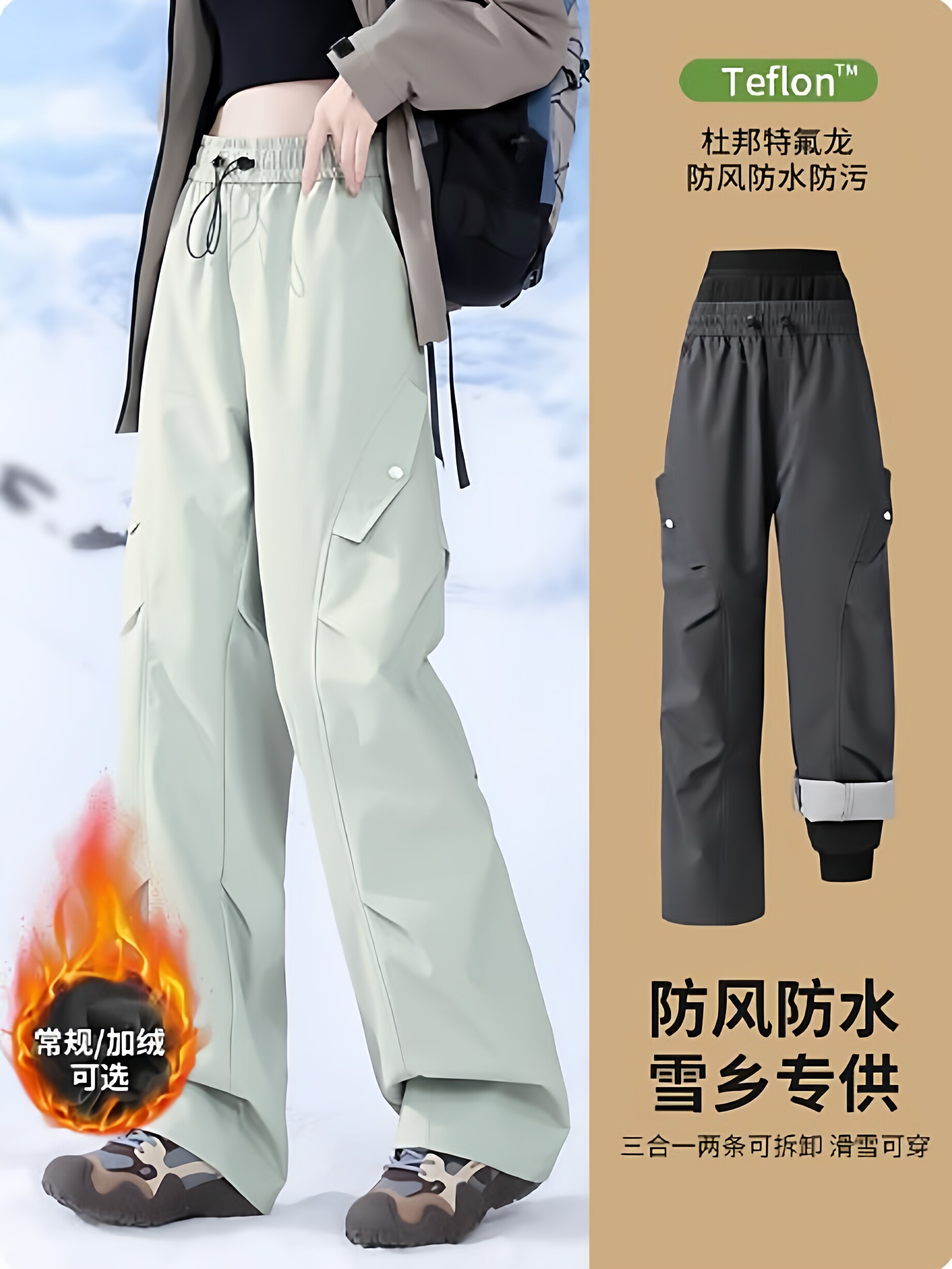 Northeast Men's and Women's Three-In-One Outdoor Pants, Harbin Snow Country Skiing, Waterproof and Cold-Proof in Sub-Zero 40 Degrees, Fleece-Lined Gear