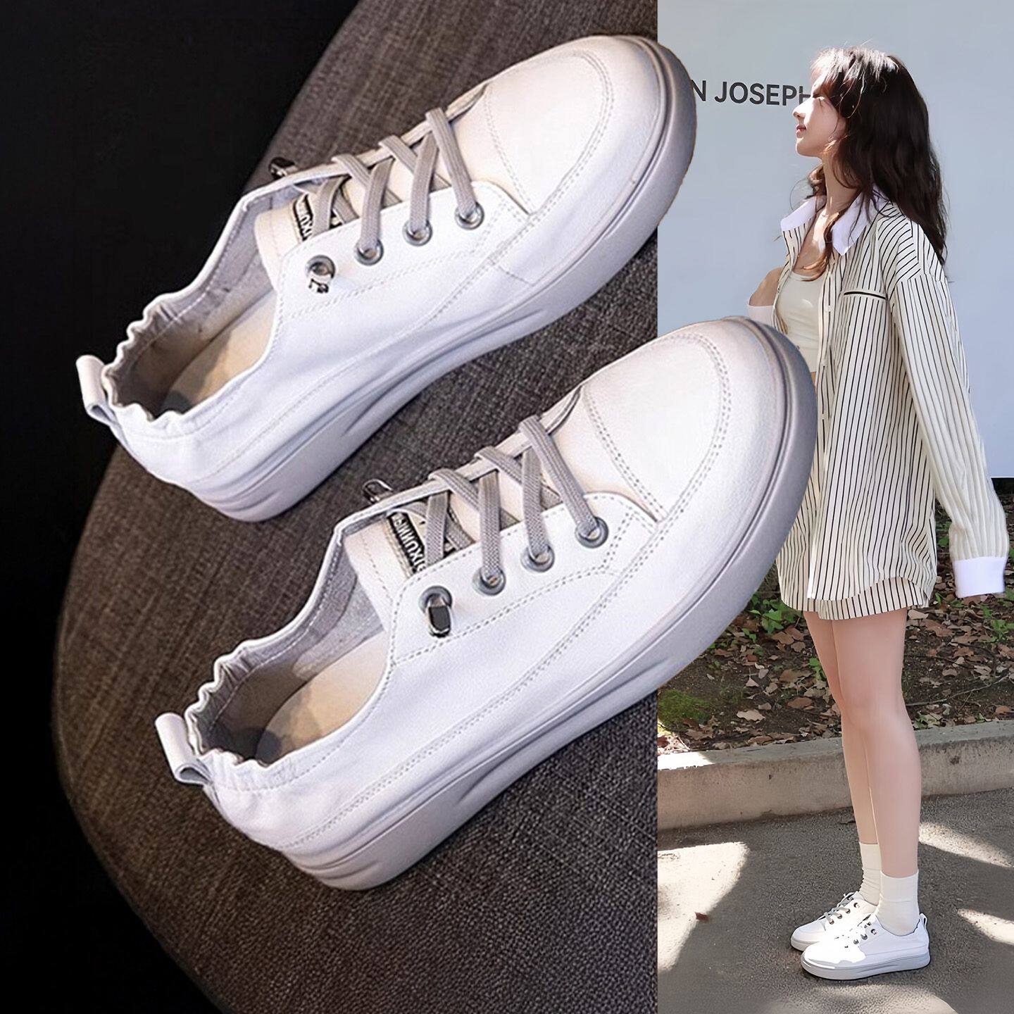 Hong Kong Genuine Leather White Sneakers 2026 Spring and Autumn New Versatile Flat Breathable Sneakers Large Size Women's Shoes 41 to 43