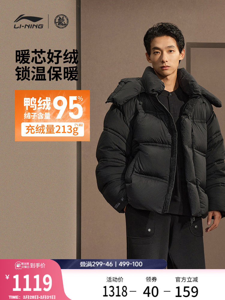 China Li-Ning Kung Fu Series down Jacket Men's Official New Top Winter Loose Sportswear