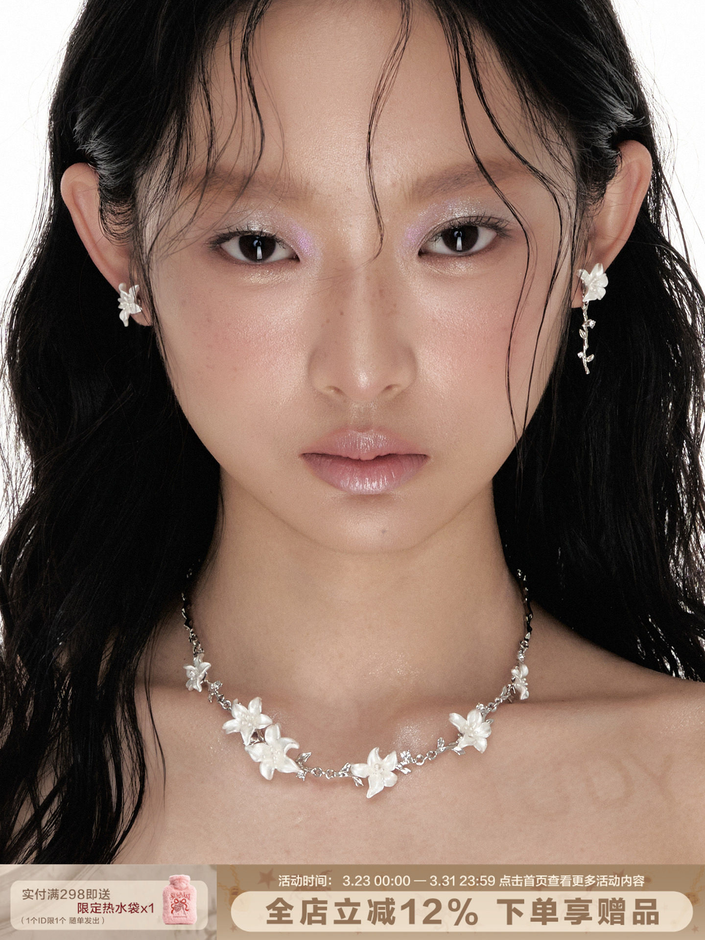 Sumiyaki Pale Whisper Series Pure White Cherry Blossom Necklace Niche Design Black and White Flower Dark Black Clavicle Chain