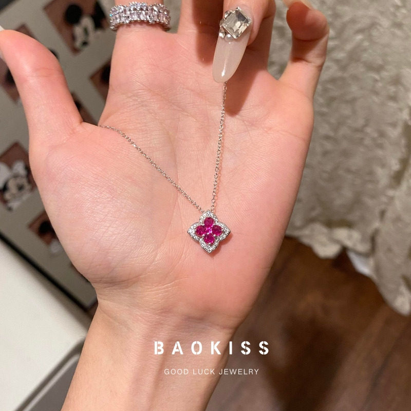 S925 Sterling Silver Four-Leaf Clover Sparkling Diamond Necklace for Women, Light Luxury Niche High-End Clavicle Chain, Gift for Best Friend's Birthday