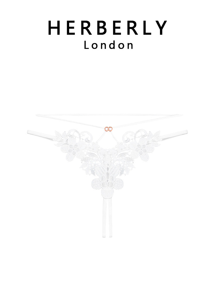 British Herberly Sexy Open-Crotch No-Removal Hollow-Out Seductive Panties for Women, Low-Waist Embroidered Thin-Strap Thong