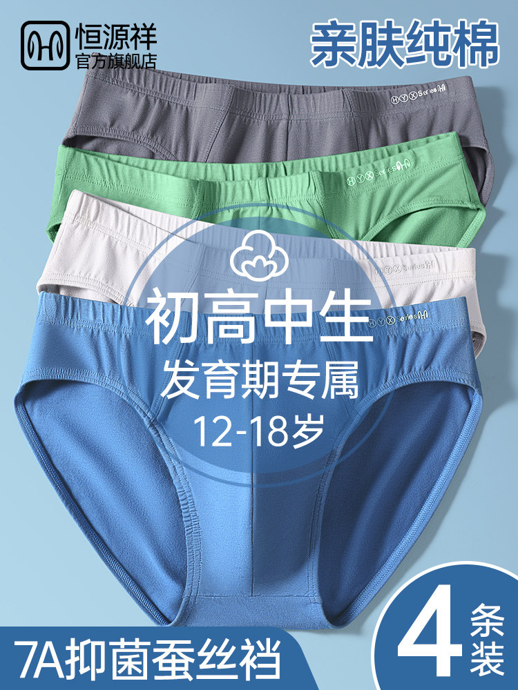Hengyuanxiang Youth Underwear for Boys, Big Kids in the Developmental Period, Students in Middle and High School, Pure Cotton Antibacterial Triangle Shorts