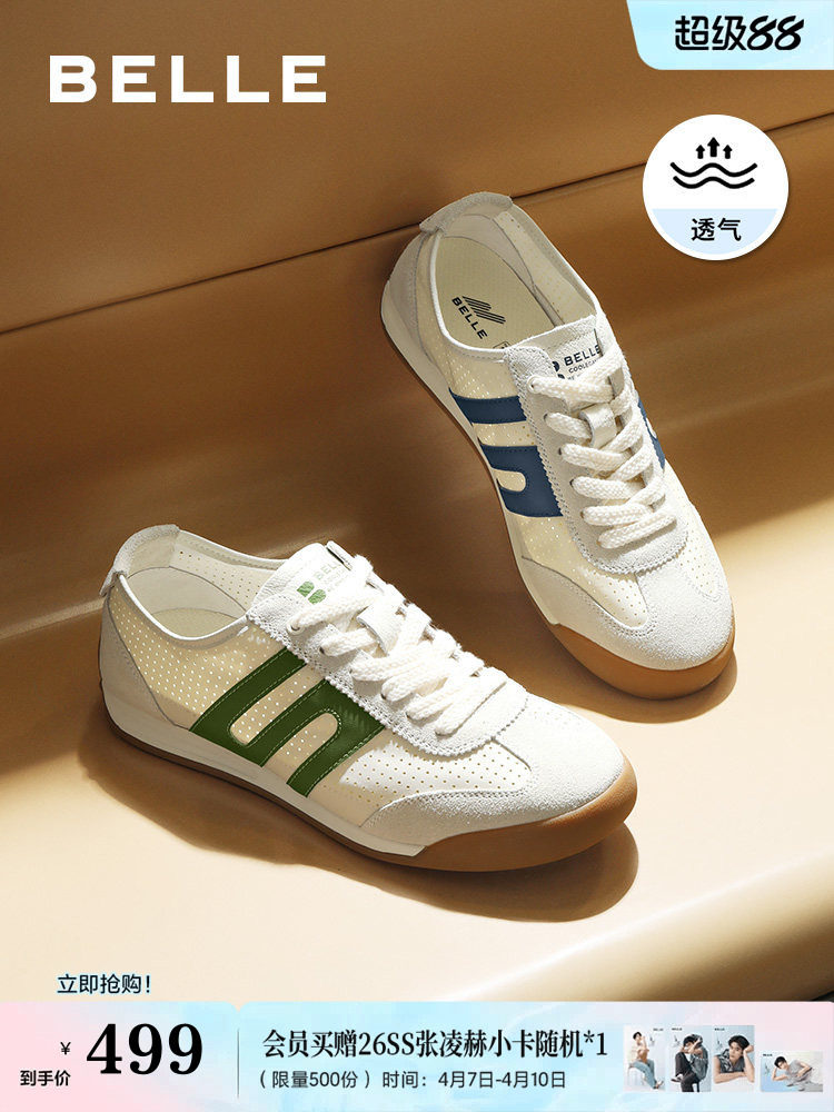 Zhang Linghe's Same Style Belle Men's Shoes, Lightweight, Breathable, Perforated, Summer Casual Agande Training Shoes L1022B