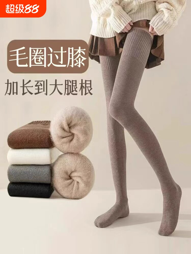 Extended Over-The-Knee Socks, Thigh-High Socks for Women, Autumn and Winter Long Socks, Thickened Warm Knee-Protecting Long Socks, Non-Slip Terry Socks for Calves