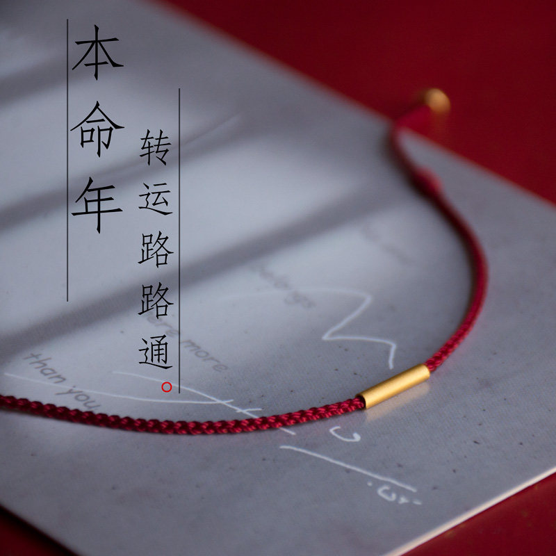 Gold Tube Road to Wealth Classic Edition Red String Bracelet for Good Luck in the Year of the Zodiac, 999 Pure Gold Bracelet with Vintage Features