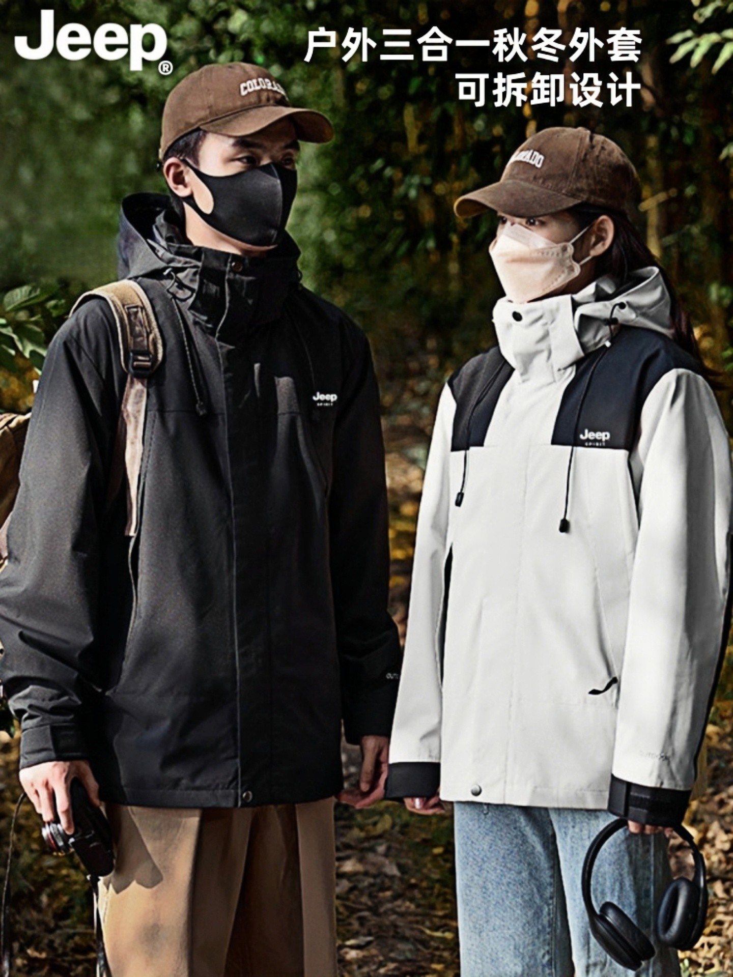 Jeep Jeep Women's 2026 New Model 3-in-1 Men's Jacket Autumn and Winter Windproof Waterproof Outdoor Jacket Custom-Made