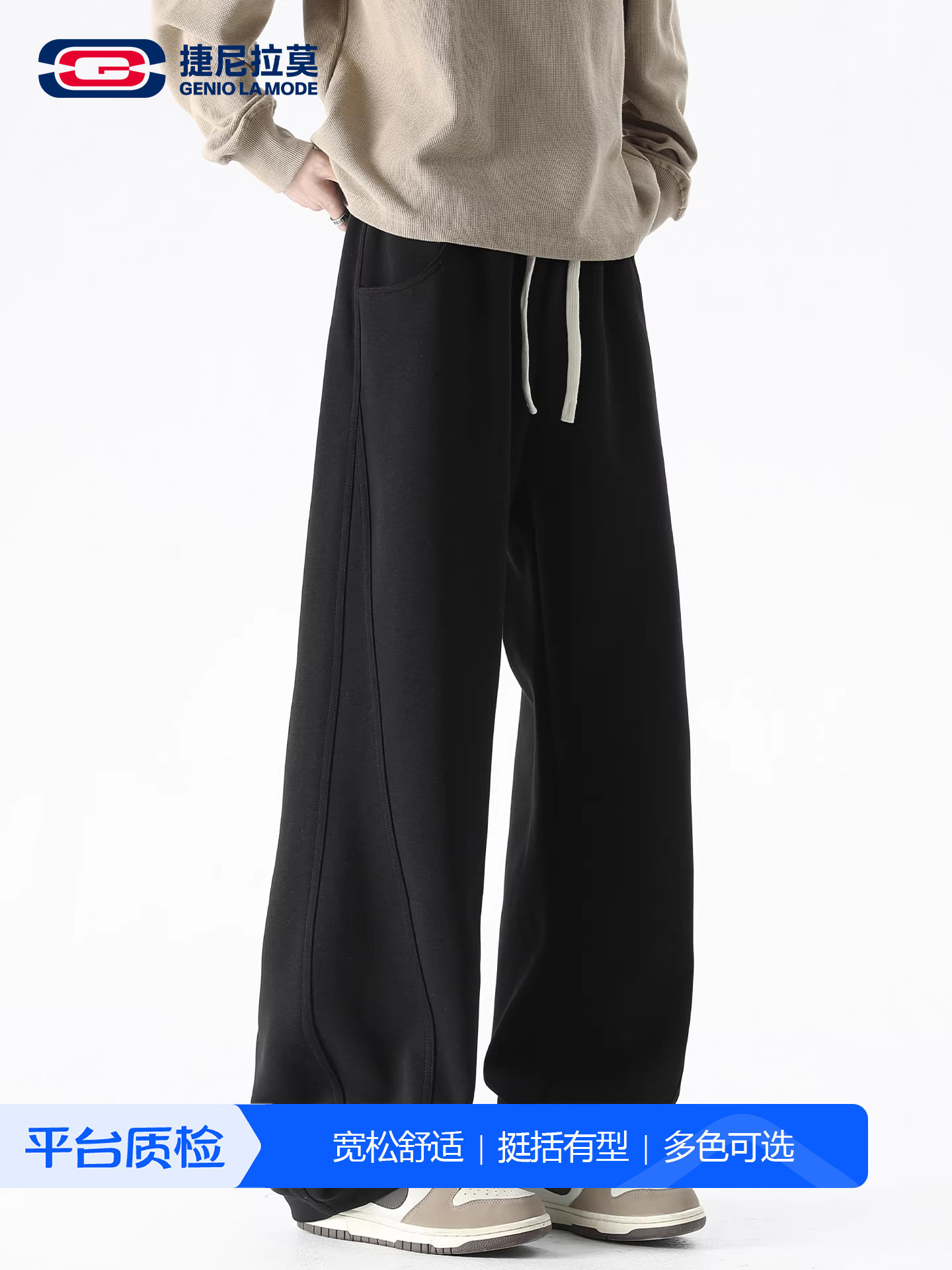 Geniolamode Black Straight Casual Pants Men's Spring New Sports Cleanfit Scimitar Sweatpants
