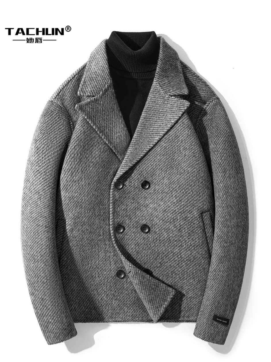 Men's Short Wool Coat for Autumn and Winter, High-End Fashion, Double-Sided Woolen Cashmere, Thick Double-Breasted Woolen Jacket, Trendy