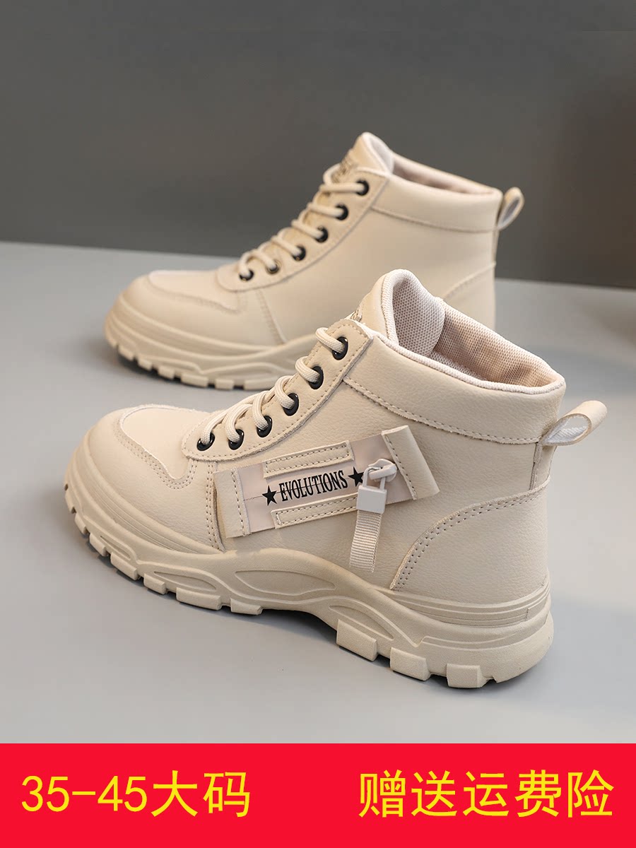 35-44 Large Size Martin Boots for Women, White High-Top Shoes, Popular Autumn and Winter Style, 4cm Height Increase, Suitable for Skirts, Non-Slip Sneakers, Short Boots