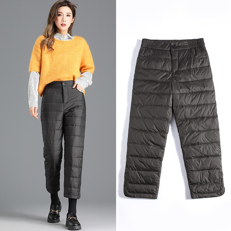Women's down Pants for Outdoor Wear, Fashionable 2025 Winter New Style, Lightweight, Thick, Loose, Cropped, Casual Straight-Leg, Warm Cotton Pants