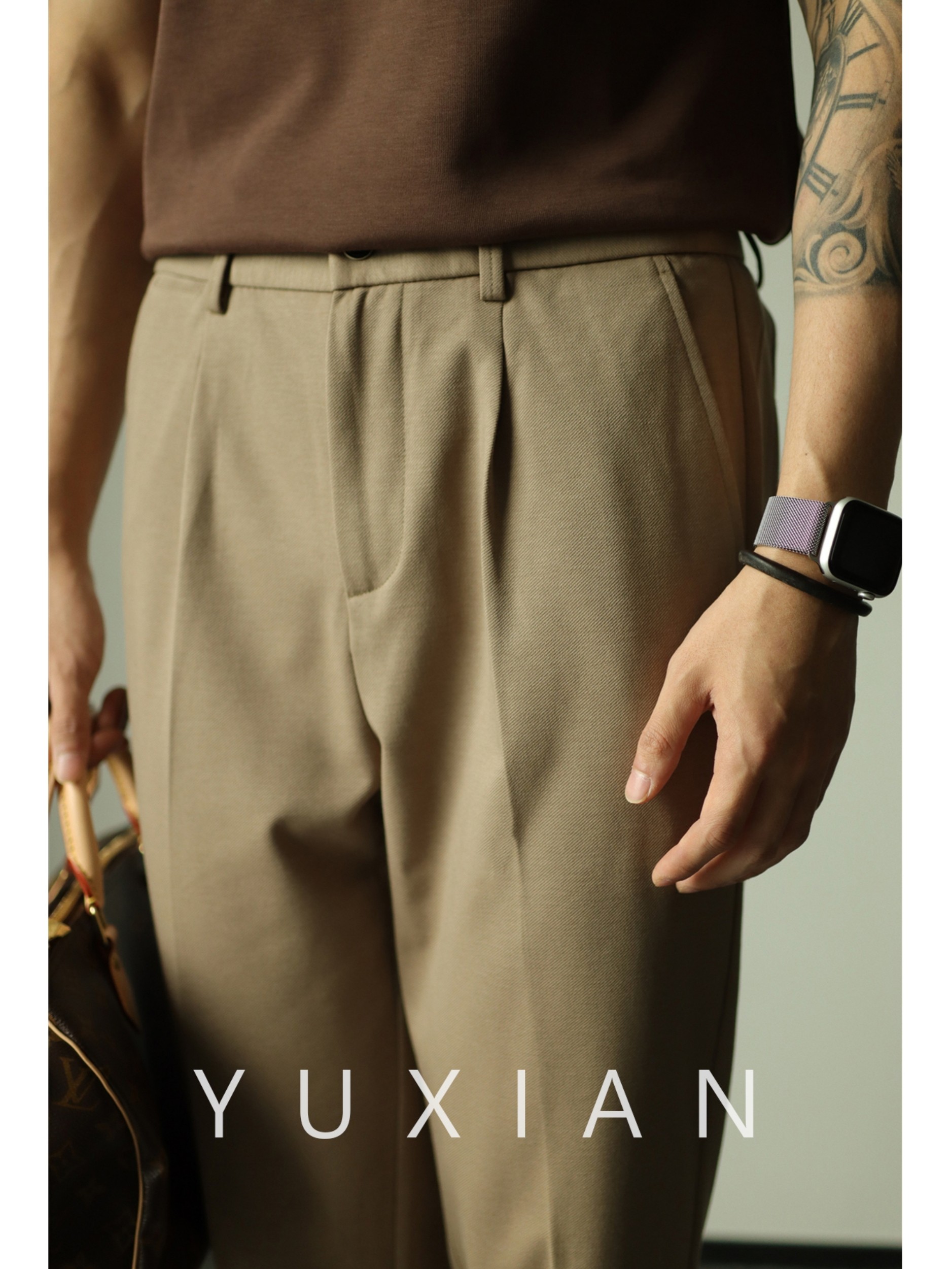 Yuxian Yuxian Special Silk Nine-Point Drape Trousers, Business Casual, Light Mature Style, Elastic Slim-Fit Tapered Trousers, Versatile for Spring and Summer