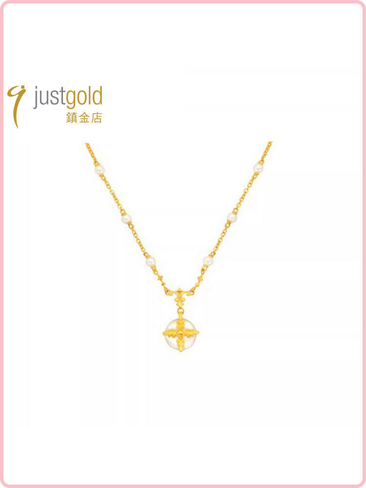 Justgold Gold Store Romantic Pearl Gold Pure Gold Necklace Set Simple and Elegant Fashion 1417681Y