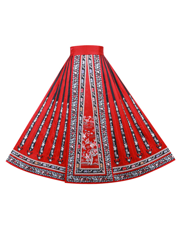 Red Sleeves Add Fragrance: Lejin Workshop Vintage Chinese Style Handmade Original Design Embroidery 26 Pieces Daily Use Mamian Skirt