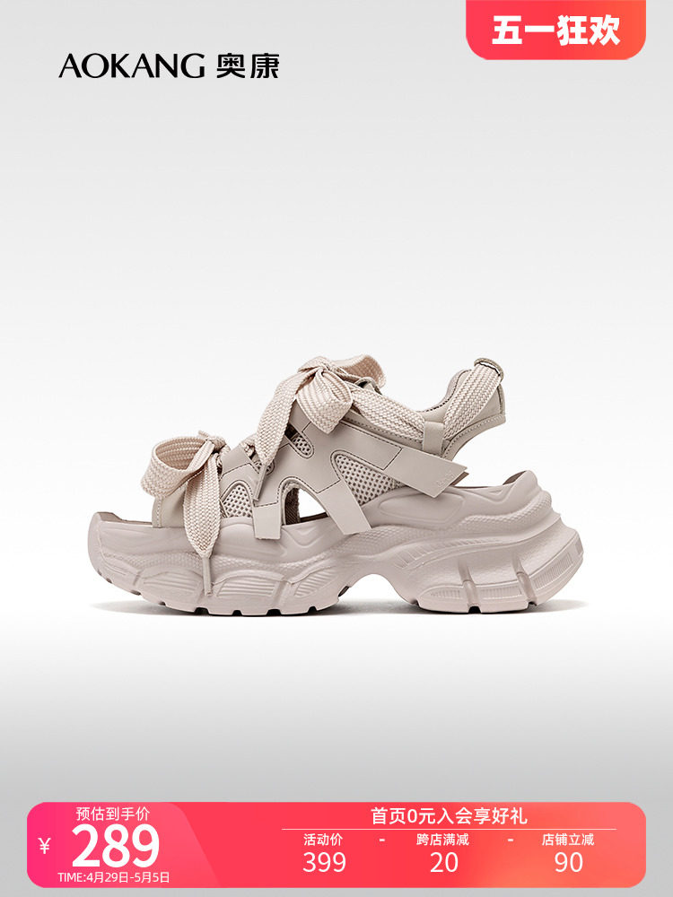 Aokang Women's Shoes, New Summer Open-Toe Thick-Soled Breathable Sandals, Fashionable and Versatile Sports Beach Sandals