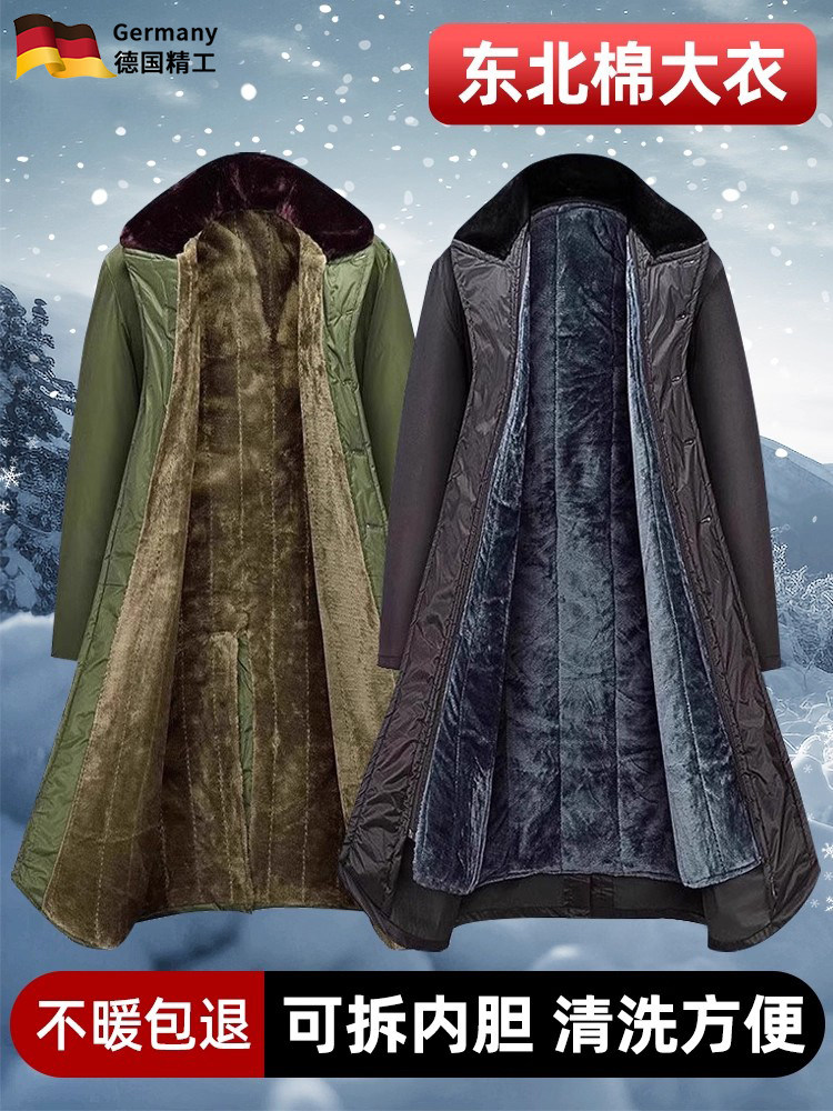 German Military Coat, Winter Long Style, Cold-Proof Cotton Jacket, Suitable for Temperatures as Low as Minus 40 Degrees in Northeast China, Fleece-Lined and Thickened, Windproof Cotton Coat