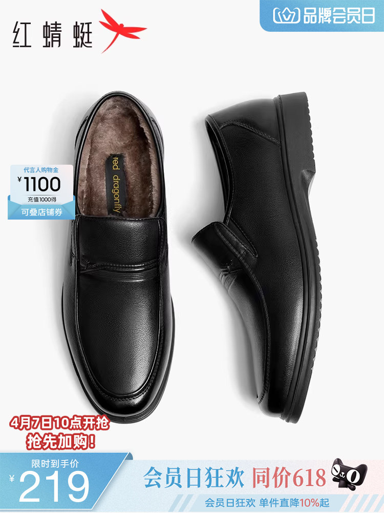 Red Dragonfly Men's Shoes Winter New Style Fleece-Lined Warm Casual Cotton Shoes Men's Genuine Leather Middle-Aged and Elderly Dad's Leather Shoes Men's Style