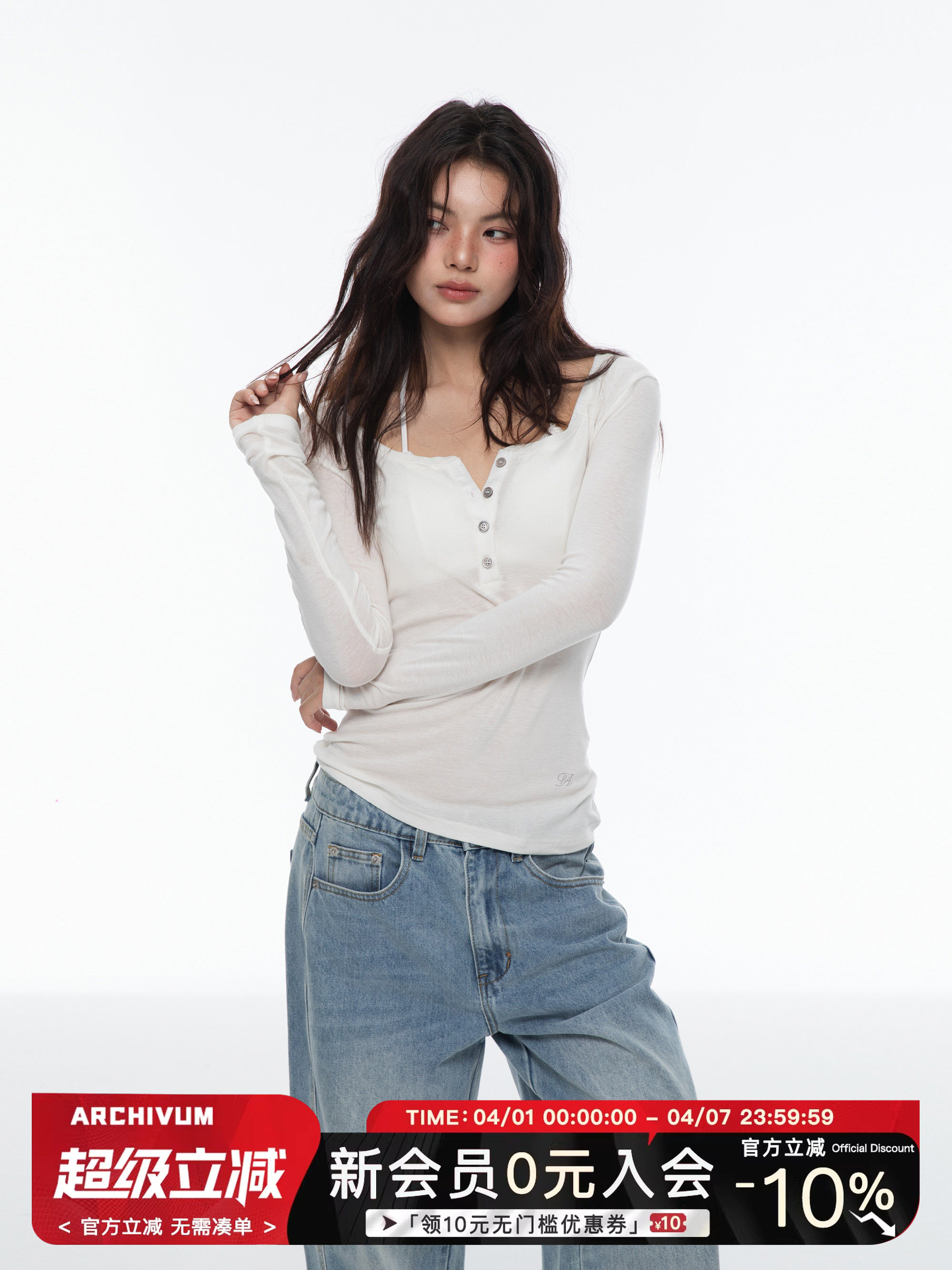 Archivum Lyocell Tencel Wool Blend U-Shaped Henley Long Sleeve Slim Fit Women's Autumn Base Shirt