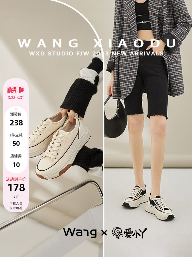 Ai Xiaoya Co-Branded [Wang Xiaodu] Hokkaido ● 4.3 Thick-Soled Height-Increasing Canvas Shoes for Women, Dissolving Sole White Shoes