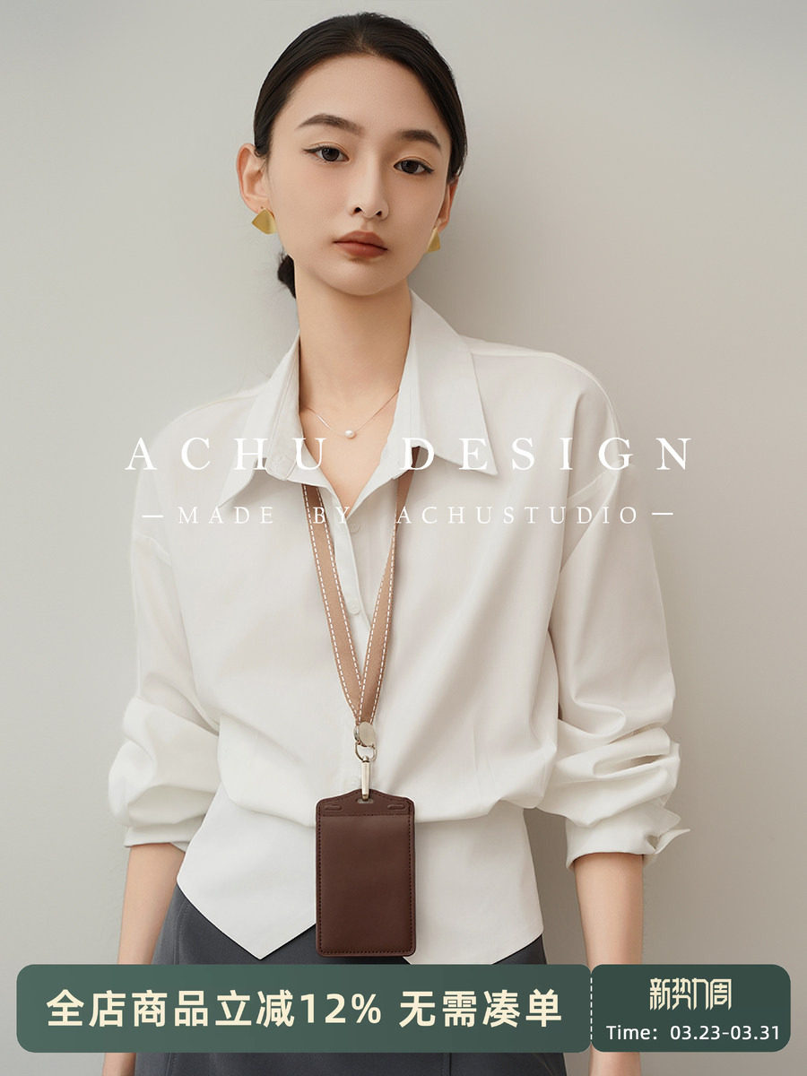 Achu Excellent Tailoring White Waist-Cinching Shirt for Women Summer Professional Workwear Shirt with Slit Design Top