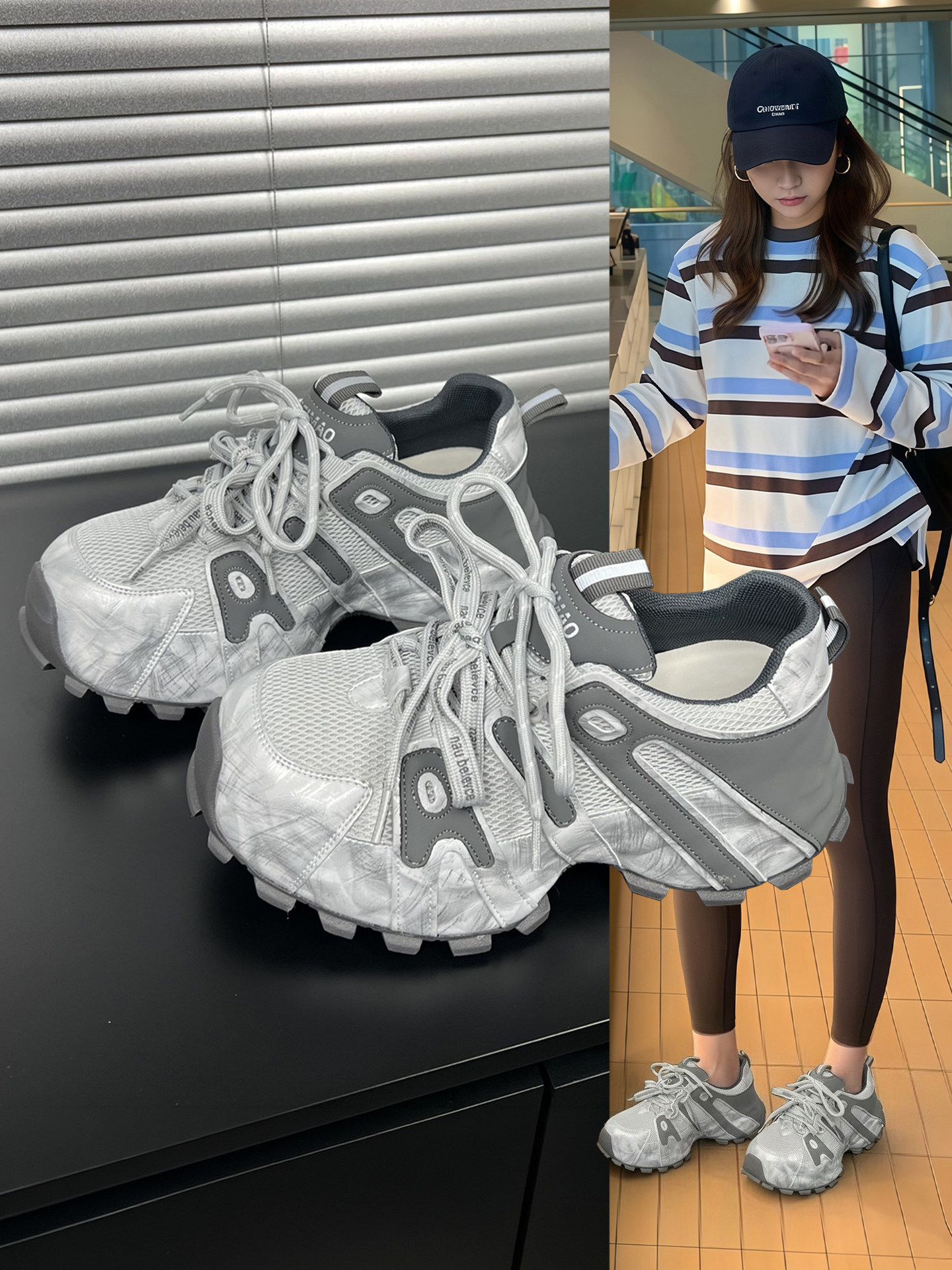Hong Kong Genuine Leather Thick-Soled Height-Increasing Dad Shoes for Women, 2026 Spring and Autumn New Style, Makes Feet Look Smaller, Fashionable, Casual, Versatile Sneakers