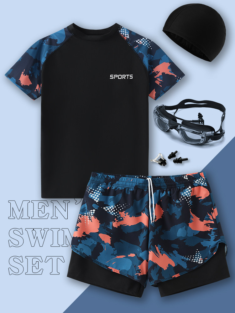 Swimsuit Men's Suit New Style Youth Adult Men's Large Size Hot Spring Double-Layer Swimming Trunks Swimming Equipment Complete Set