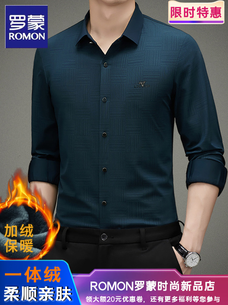 Romon Fleece-Lined Thickened Shirt for Men, Winter Business Casual, Warm, Wrinkle-Free, Non-Iron Shirt, Top, Base Layer Shirt