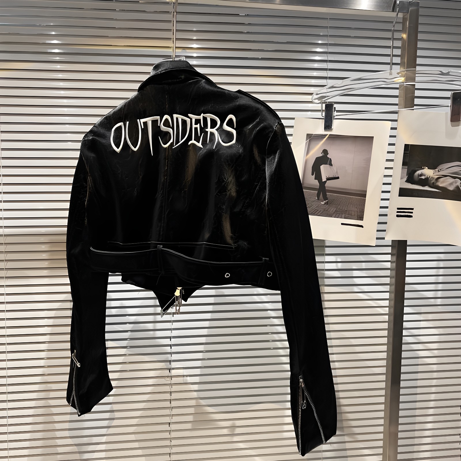 [in Stock] 2026 Spring New Motorcycle Girl Letter Embroidery Lychee Leather Glossy Pu Leather Jacket for Women