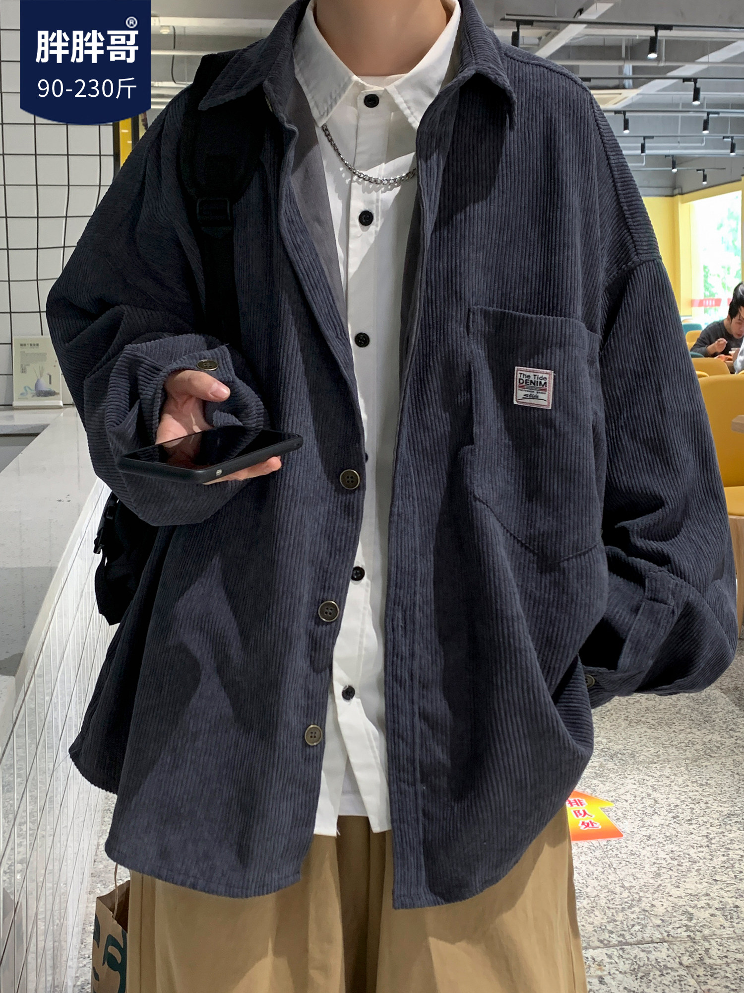 Japanese-Style Workwear Corduroy Long-Sleeve Shirt for Men, Spring Trendy Casual Loose Oversized Thickened Men's Shirt Jacket