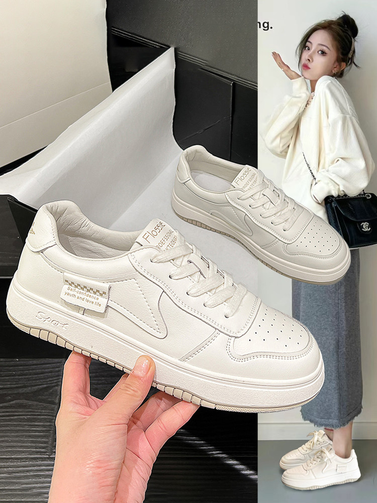 Hong Kong Genuine Leather White Sneakers for Women, 2026 New Spring and Autumn Popular Versatile ins Sneakers, Korean Style Casual Shoes
