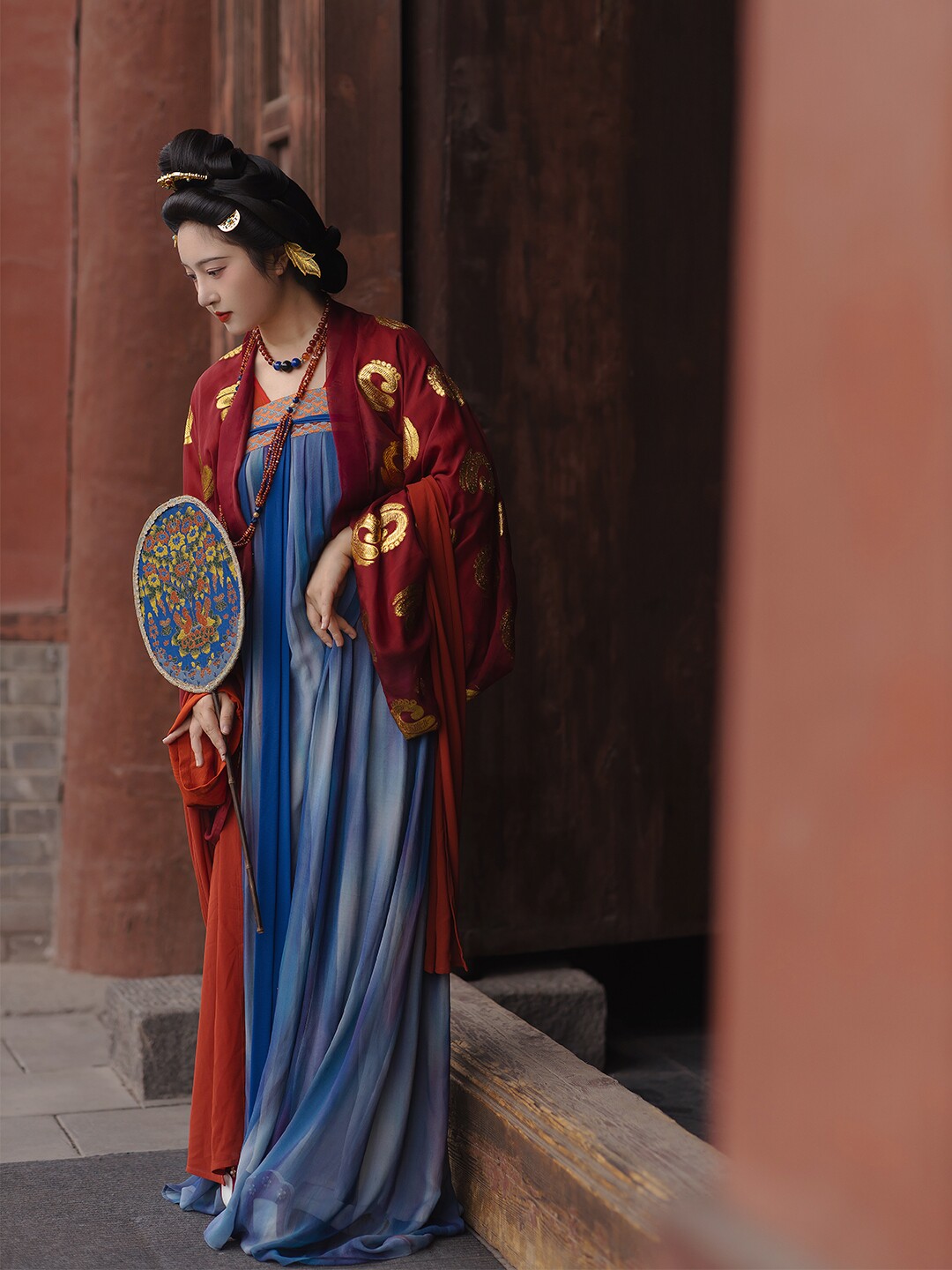 [in Stock] [Fa Men Guanzhu] Silk Tang Dynasty Hanfu, Same Style as Fa Men Temple, Covered Crotch, Cut-Out Design, 9mm Qi Xing Skirt