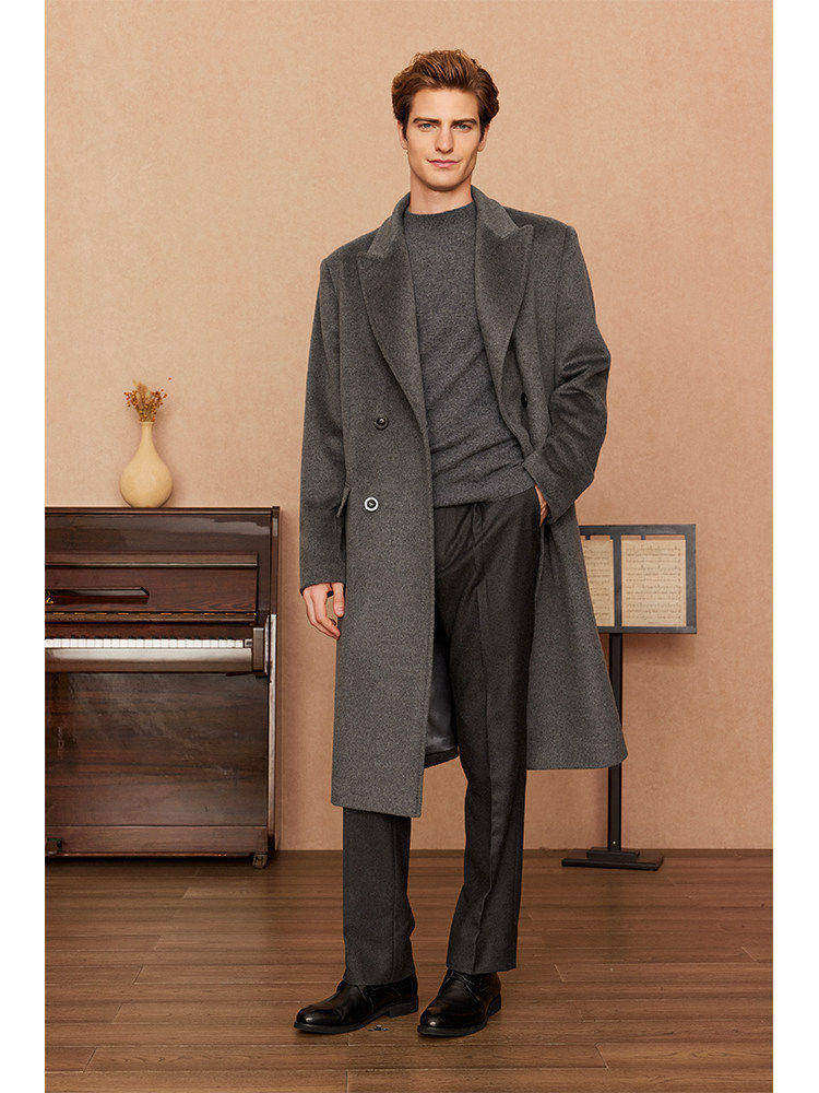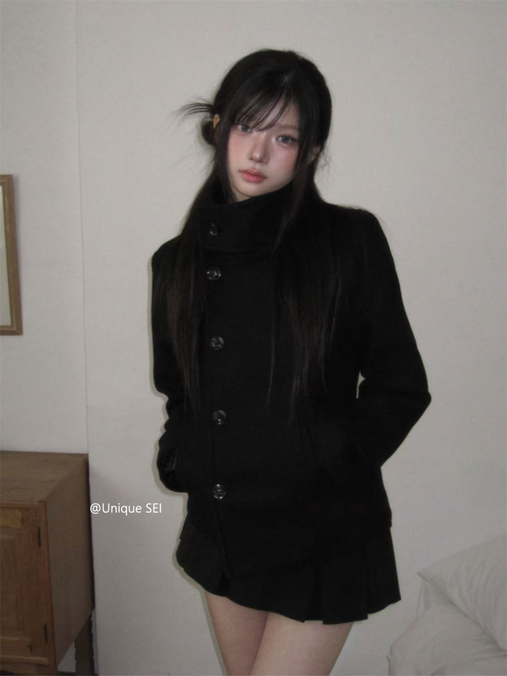 Unique Sei Cool and Elegant Korean-Style Retro Winter Versatile Slim-Fit Double-Breasted High-Neck Woolen Coat